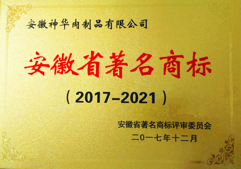 日前,安徽神華肉制品有限公司“shenhua肉品及圖”注冊商標被認定為2017年“安徽省著名商標”。